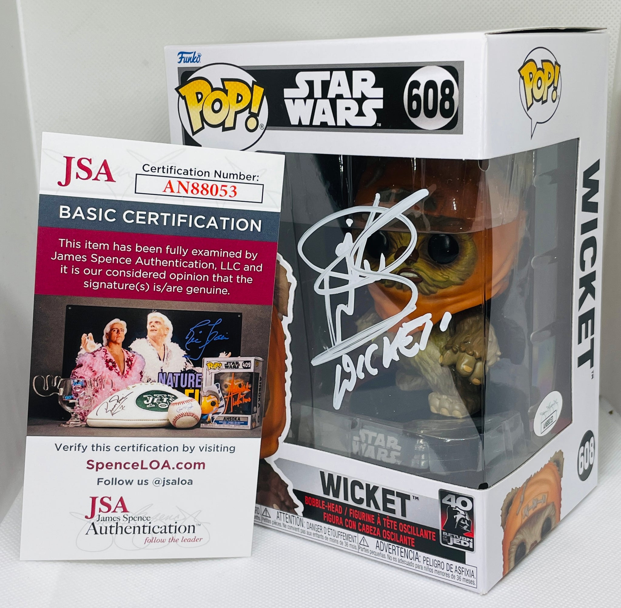 Wicket 608 Star Wars funko pop signed by Warwick Davis