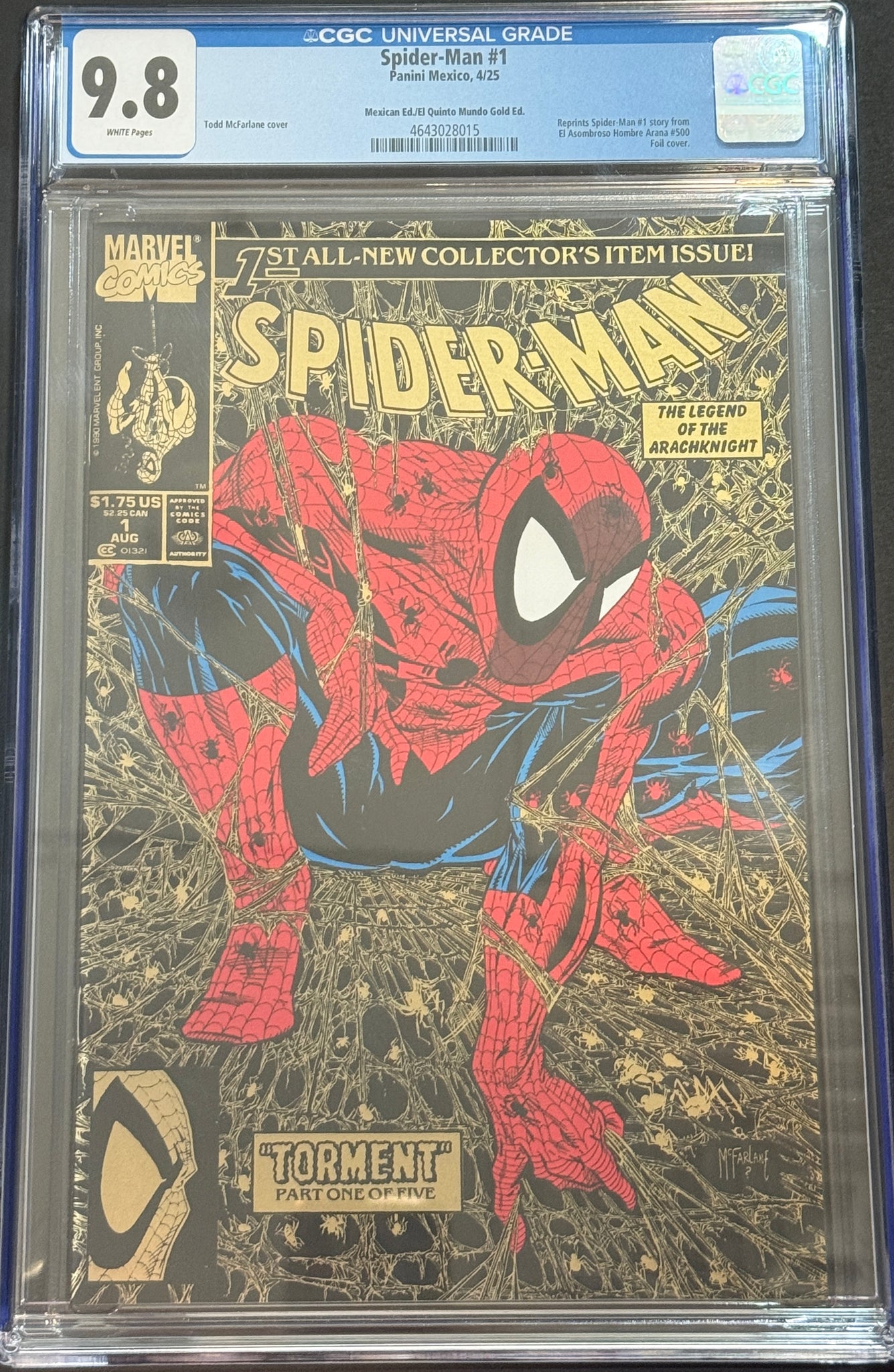CGC 9.8 Spider-Man #1 (2025) Mexican Foil El Quinto Mundo Gold Edition limited to 1,000 Todd McFarlane